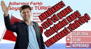 Burdur Belediye Başkanlığının çağrısıyla Köprübaşı’nda toplanan Burdur halkı, Gazi Caddesi boyunca Amerikan güdümlü Fethullahçı Terör Örgütü (FETÖ’cü) darbe girişimine karşı coşkun akan bir sel gibi Cumhuriyet Meydanına aktı. Meydanda bekleyen kitle ile kaynaştı. Amerikancı FETÖ’cü başarısız darbe girişimine karşı ülke […]