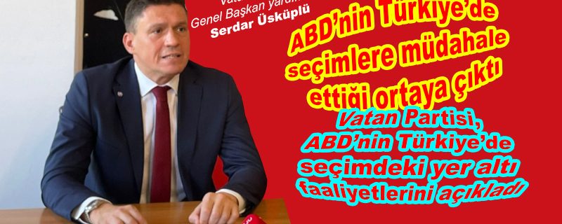 Vatan Partisi, ABD’nin Türkiye’deki seçimde yer altı faaliyetlerini açıkladı AK Parti Hükümeti, emperyalistlerin altını oymasına göz yumuyor Türkiye’de devlet zafiyeti artarak sürüyor Vatan Partisi Genel Başkan Yardımcısı Serdar Üsküplü, Vatan Partisi İstanbul İl Başkanlığı binasında düzenlediği basın açıklamasıyla Türkiye seçimlerine “ikinci CIA” diye adlandırılan Ulusal Demokrasi Vakfı (NED’in) müdahalelerini ABD belgeleriyle kamuoyuna duyurdu. Doğan Özkan’ın … Okumaya devam et ABD’nin Türkiye’de seçimlere müdahale ettiği ortaya çıktı