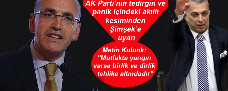 Metin Külünk: “Mutfakta yangın varsa birlik ve dirlik tehlike altındadır” Eski AKP MKYK Üyesi Metin Külünk, yaşanan ekonomik sorunları sosyal medyadan yaptığı paylaşımla gündeme getirdi. Hazine ve Maliye Bakanı Mehmet Şimşek’e uyarıda bulunan Külünk, “Net ifade edeyim ki, mutfakta feryat, … AK Parti’nin tedirgin ve panik içindeki akıllı kesiminden Şimşek’e uyarı okumayı sürdür
