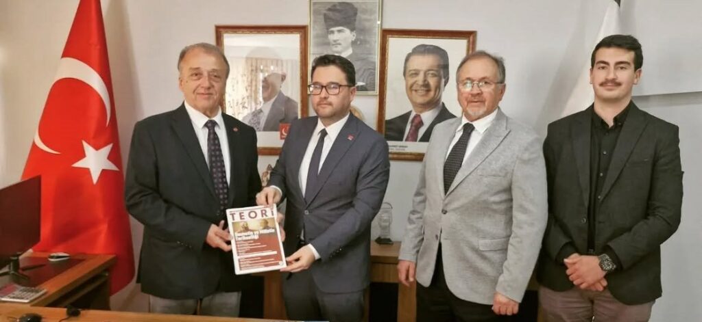 başkan Özbay Başkan Tekin’e Teori’nin son sayısını hediye etti.