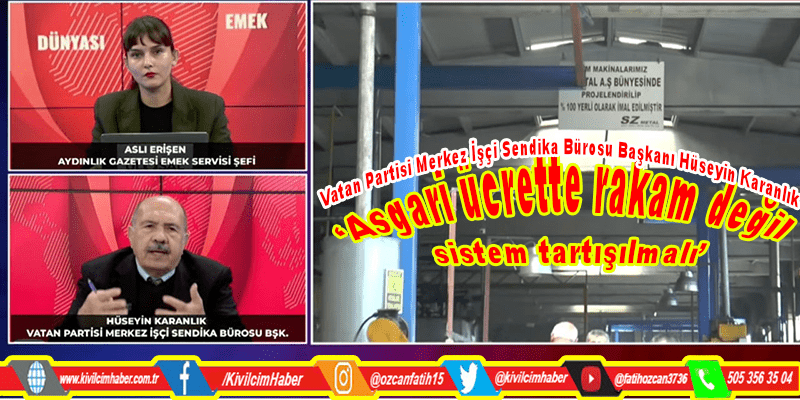 Aslı Erişen’in Aydınlık gazetesindeki haberine göre, Vatan Partisi Merkez İşçi Sendika Bürosu Başkanı ve Genel Sekreter Yardımcısı Hüseyin Karanlık, 2026 yılı asgari ücret görüşmeleri, devam eden grevler ve Meclis’e sunulan bütçe teklifi üzerine kapsamlı değerlendirmelerde bulundu. Karanlık, mevcut ekonomik programın “sürdürülemez” olduğunu vurgulayarak, “Üretimi merkeze alan siyasi bir irade değişikliği şart.” dedi.
