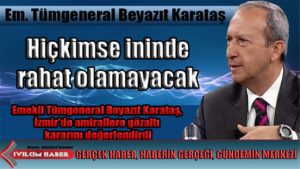 Emekli Tümgeneral Beyazıt Karataş, İzmir’de amirallere gözaltı kararını değerlendirdi İzmir Cumhuriyet Başsavcılığı tarafından Askeri Casusluk davasında kumpas kurdukları ve sahte delil ürettikleri belirtilen iki amiral ve dört binbaşı hakkında gözaltı kararı çıkarıldı. Ulusal Kanal’ın haberine göre, F Tipi Örgüte yönelik […]