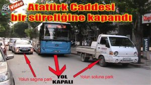 Atatürk Caddesi bir süreliğine trafiğe kapandı Dün öğleden sonra Atatürk Caddesi LC Waikiki önünde bir süreliğine trafiğe kapandı. Caddede yanyana 3 aracın park etmesi sonucu yolcu otobüsü park yapan araçların arasından geçemeyince yol kapandı; arkasında uzun bir araç kuyruğu oluştu. Dün (13 Haziran 2015 günü) Atatürk Caddesi PTT girişinde, vatandaşları ve esnafı sinir küpü yapan […]