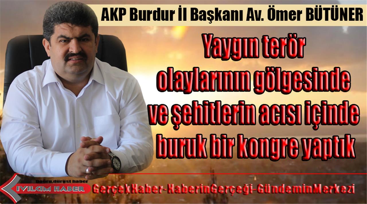 Adalet ve Kalkınma Partisi (AKP) Burdur İl Başkanı AV. Ömer Bütüner, 12 Eylül 2015 tarihinde gerçekleşen 5’nci olağan Büyük Kongrelerini, bu çerçevede 1 Kasım seçimlerini ve yerel şartları KıvılcımHaber’e değerlendiren bir söyleşi verdi. Kongrenin ülkenin içinde bulunduğu fiili ortam ve her gün gelen şehitler nedeniyle coşku ve heyecanın olmadığı buruk bir genel kurul yaptıklarını belirtti.