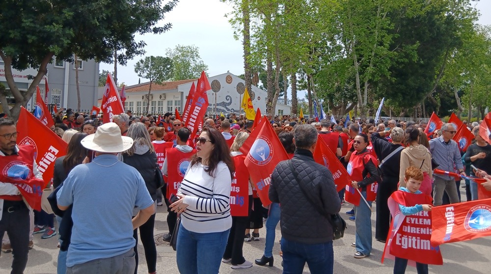 Antalya’da Eğitim İş, Eğitim Sen, Hürriyetçi Eğitimciler Sendikası ve Türk Eğitim sen Milli Eğitim Müdürlüğü önünde miting gibi kitlesel basın açıklaması yaptı.