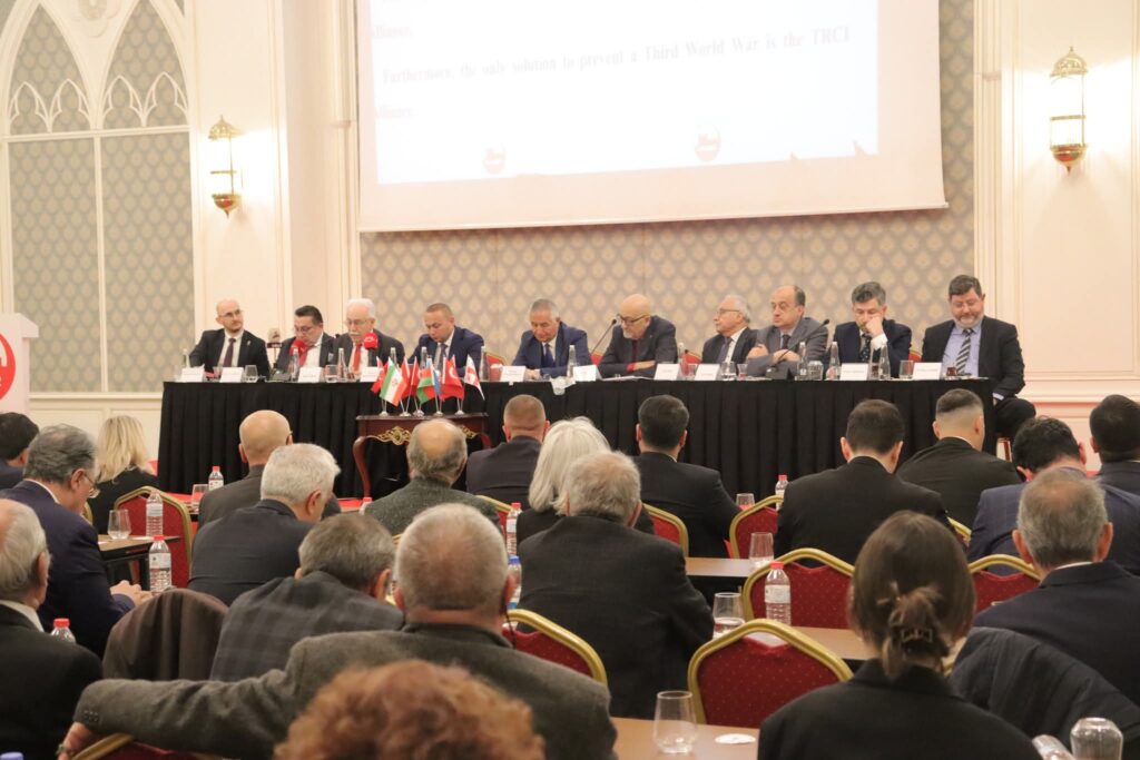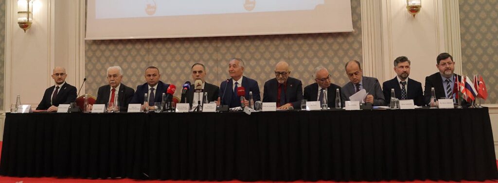 BİLDİRGEDE şu çağrı yapıldı: “Konferansımız, Üç Artı Üç Platformu’nun dünya ölçeğinde işlev görmesi için, Türkiye+ Rusya+ İran+ Çin İttifakı’nı zorunlu ve acil görmektedir. Batı Asya’da bölgesel bir savaşı önleyecek ve Üçüncü Dünya Savaşı’nın önünü kesecek biricik çözüm, Türkiye, Rusya ve İran’ın Çin Halk Cumhuriyeti ile iş birliği yapmasıdır. Güney Kafkasya, güvenlik, barış ve istikrar için anahtar konumundadır. Bölge devletlerini ve halklarını ortak güvenlik, iyi komşuluk, kardeşlik, enerji güvenliği ve ekonomik iş birliği için göreve çağırıyoruz.