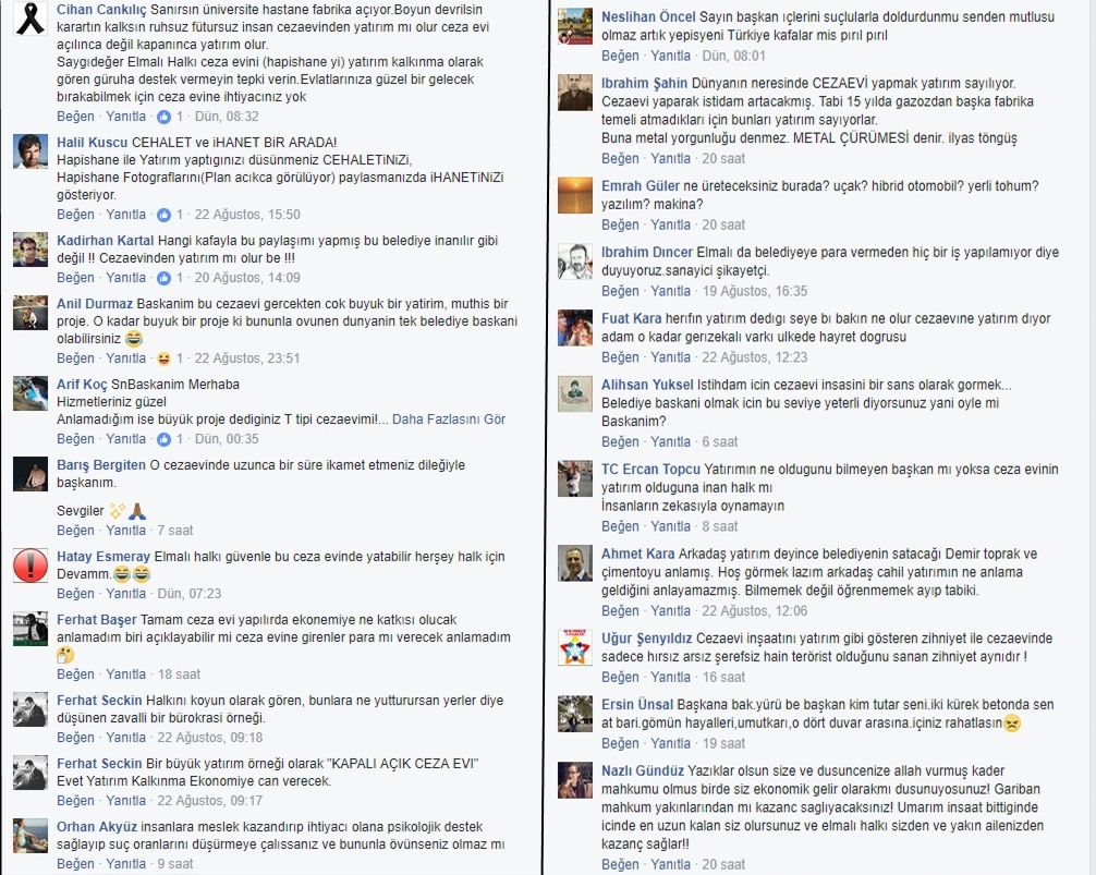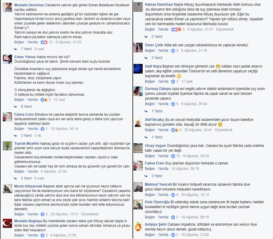 Cezaevi yapmakla, cezaevi inşaatını yatırım olarak değerlendirmekle öğünen zihniyetin, insana değer vermeyen, sadece “masa ve kasa” peşinde koşan bir zihniyet olduğu belirtiliyor. “Bu büyük proje, Elmalı istihdamına ve ekonomisine can verecek büyük bir proje”ymiş!