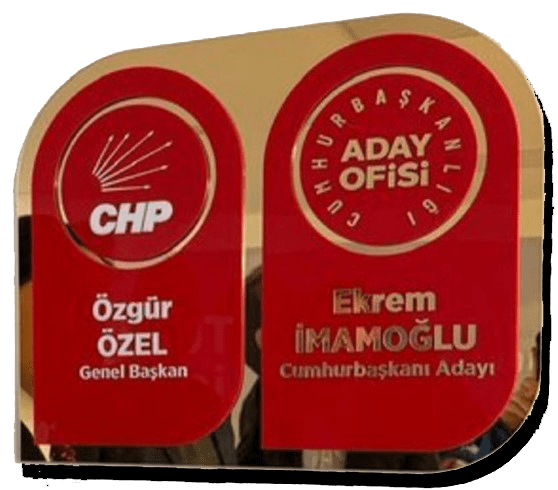 CHP’nin Cumhurbaşkanlığı Aday Ofisi’nde, adaylık rekabetini gösteren bir olay daha yaşandı. Sadece Ekrem İmamoğlu’nun adı olan pirinç kapı isimliğinin yanına Özgür Özel de eklendi. Geçen ay da kürsünün arka planı değişmişti. Ekrem İmamoğlu’nun büyük fotoğrafı, adı ve imzası arka plandan çıkarılmıştı. Yerine logo ve Atatürk’ün fotoğrafı ile imzası gelmişti.