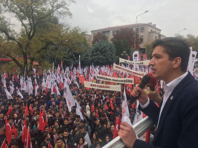 “Türk milleti ve Türk gençliği hem şehirlerinde hem üniversitelerinde hem liselerinde bu terör örgütleriyle savaşmaktadır. Umumi manzarayı Türk gençliği olarak çok iyi görüyoruz. Bir taraftan da milli birliğe en çok ihtiyaç duyduğumuz bu günlerde milletin birliğini bölecek belli başlı uygulamalar maalesef hükümet tarafından dayatılmaktadır. Türk gençliği bu dayatmalara asla geçit vermeyecek. Bu sebeple burada toplandık. Atatürksüz müfredata asla geçit vermeyeceğiz. Türk ordusunu bozguna uğratmaya çalışan güçlere asla izin vermeyeceğiz. Türk milletini bölmeye, bölmeye çalışan güçlere asla geçit vermeyeceğiz. İşte bu kararlılıkla bugün burada toplanmış bulunuyoruz. Türk gençliği işte bu ahval ve şerait içinde dahi vazifeye atılmıştır. Bugün Ankara’da buluşmadan önce 3 günlük bir yürüyüşten geldik. Bu 3 günlük yürüyüşü tıpkı Mustafa Kemal gibi Samsun’dan başlattık. İlk adımımızı Samsun’dan attık ve ardından Amasya’ya, Erzurum’a ve Sivas’a geçtik. Gördüğümüz tablo şudur: Türk Milleti bağımsızlığı için savaşmaya hazırdır, Türk milleti manda ve himayeye, yeni mandacılara asla geçit vermeyecektir. Türk Milleti, milli sınırlar içinde vatanının bölünmesine asla geçit vermeyecektir ve Türk Milleti “Ya İstiklal Ya Ölüm” şiarında birleşmiştir.”