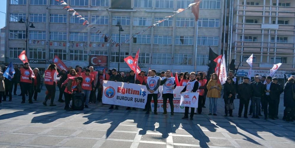 Açıklama metnini Eğitim İş Burdur Şube Başkanı Yavuz Onur okudu.