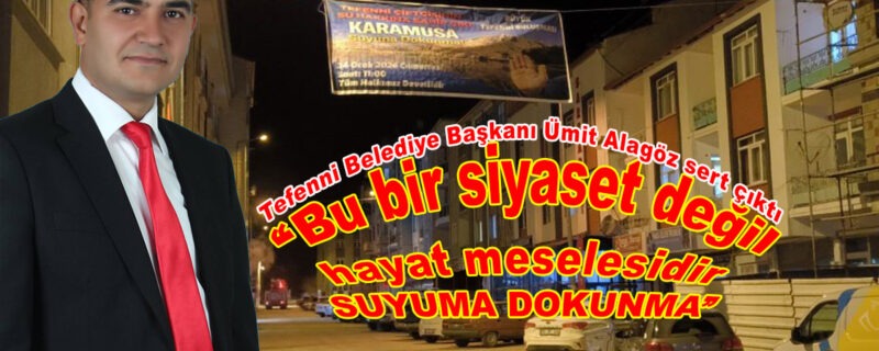Başkan Alagöz’den Karamusa Suyu İsyanı! Tefenni Belediye Başkanı Ümit Alagöz, son iki yıldır Burdur içme suyu barajı konusunda gündemde olan Karamusa Kırkpınar suyu ile ilgili projelere sert tepki gösterdi. Alagöz, söz konusu kaynağın Tefenni ve çevre köylerin görüşü alınmadan siyasi … Karamusa Suyu isyanları başladı okumayı sürdür