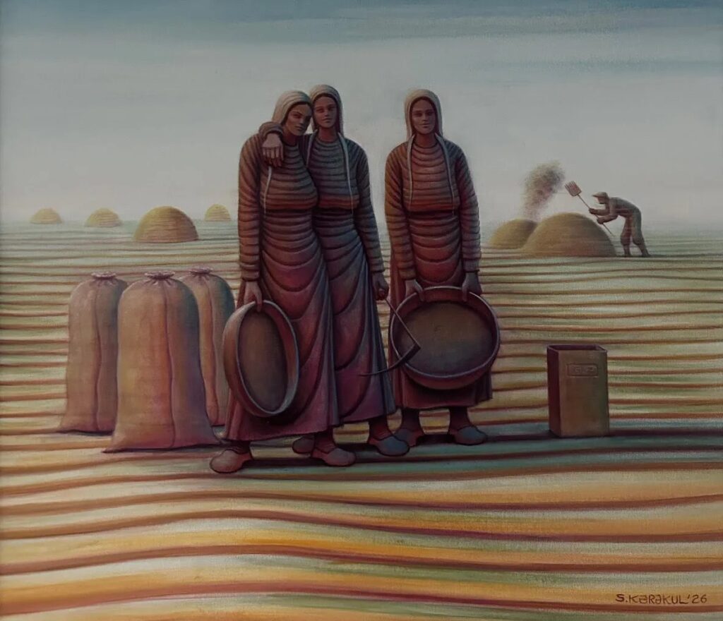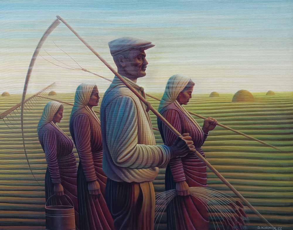 Anadolu insanının üretimden gelen bir gücü olduğunu bildiren Karakul, “Geçmişte üretim ilişkileri çok başkaydı. Yardımlaşma vardı. Diyelim bir kişinin 10 tarlası var. Bütün herkes toplanıp o kişinin işini yapardı. Bu ilişkileri konu ediyoruz. Günümüz koşullarında üretimden kopma gibi bir durum var. Üreticiye destek olunmuyor, üretici emeğinin karşılığını alamıyor. Benim resimlerim bir anlamda buna bir gönderme. Bu olumsuz gidişata karşı bir önerme.” dedi.