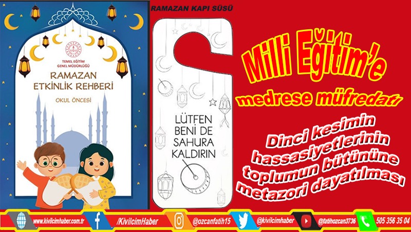 Milli Eğitim Bakanlığı (MEB) Temel Eğitim Genel Müdürlüğü, okul öncesi, ilkokul ve ortaokullarda, Ramazan ayı boyunca uygulanmak üzere, her biri için ayrı ayrı ‘Ramazan Etkinlik Rehberi’ çıkardı. ‘Türkiye Yüzyılı Maarif Modeli’ kapsamında ‘değerler eğitimi’ olduğu öne sürülen etkinliklerle, Ramazan ayı boyunca adeta eğitim müfredatına ara verilip Ramazan Müfredatı uygulanacak.