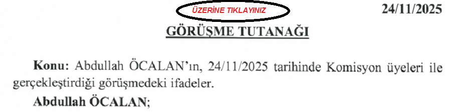 Bu kapsamda Meclis’teki “Milli Dayanışma, Demokrasi ve Kardeşlik Komisyonu” üyelerinin 24 Kasım 2025’te Abdullah Öcalan ile İmralı Adası’nda yaptığı görüşmeye ilişkin tam tutanaklar, görüşmeden iki ay sonra TBMM’nin internet sitesinden “İmralı Yüksek Güvenlikli Cezaevi Görüşme Tutanağı” başlığıyla paylaşıldı.