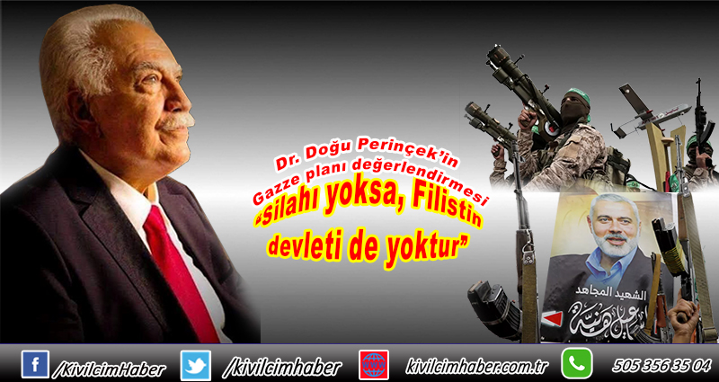 Vatan Partisi Genel Başkanı Doğu Perinçek, ABD Başkanı Trump ile İsrail Başbakanı Netanyahu’nun açıkladıkları Gazze planının esasının, Filistin’in silahsızlandırılması olduğunu vurgulayarak, Hamas’sız Filistin devletinin devlet olmadığını, devletin silahla varolabildiğini belirtti. Perinçek, “Silahı yoksa, Filistin devleti de yoktur” dedi.