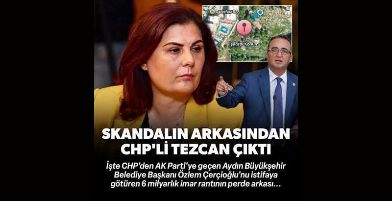 CHP’den istifa ederek AK Parti’ye geçen Aydın Büyükşehir Belediye Başkanı Özlem Çerçioğlu’nu istifaya götüren 6 milyarlık imar rantının perde arkası aralanmaya başladı. İmar rantı skandalının arkasından Milletvekili Tezcan çıktı.