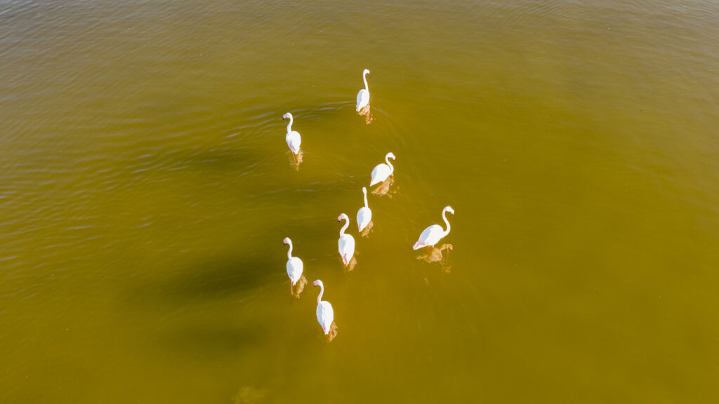 Prof. Dr. Karataş’ın, kuruyan Düden Gölü’nden geçmiş yıllarda fotoğrafını çektiği uçan ördek / Çıkrıkçın (üstte) ve flamingolar.