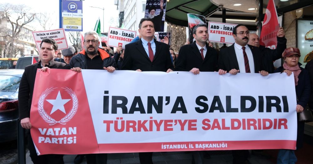ABD emperyalizmi ve İsrail Siyonizminin İran’a sinsi ve alçak saldırısı karşısında, askeri uzmanların İran’ın yanında durmanın jeopolitik bir zorunluluk olduğunu belirtmelerine rağmen siyasi iktidarın eşsizliğine ve bir kınama mesajı bile çıkaramamasına rağmen Vatan Partisi ülke çapında illerde sahaya indi; bu kapsamda “İran’a saldırı Türkiye’ye saldırıdır” şiarı altında İstanbul İl Başkanlığı bugün bir yürüyüş ve basın açıklamasıyla ABD ve İsrail’i protesto etti.