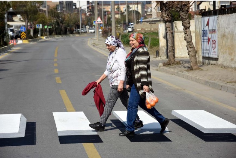 Aydın’da, üç boyutlu yaya geçidi uygulaması hayata geçti. Üç boyutlu yaya geçidi Türkiye’de bir ilk oldu. Kent merkezi ve farklı caddelerdeki uygulamada, üç boyut sayesinde, araç sürücüleri önlerinde bir yükseklik varmış gibi algılayıp hızlarını azaltıyor, yayalar da karşıya daha güvenli geçiyor.